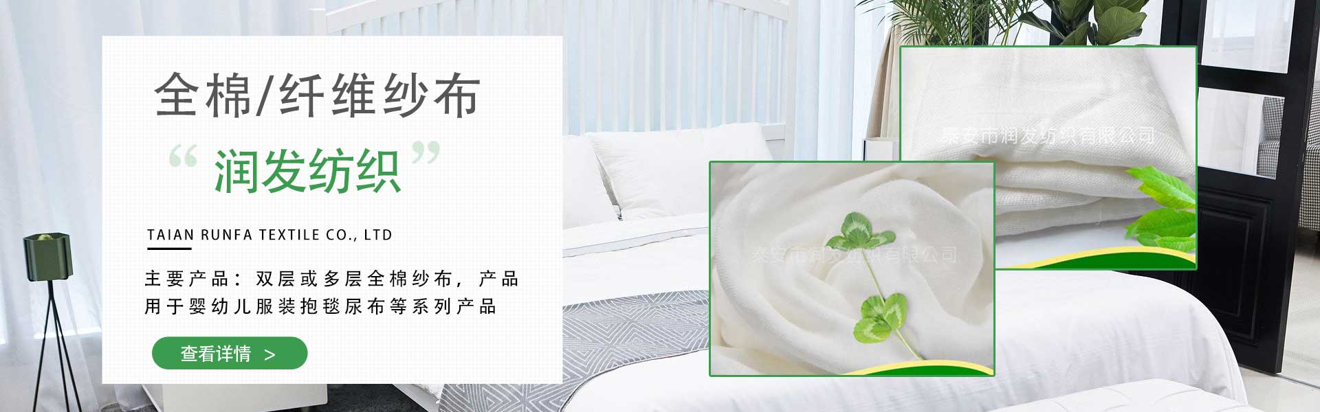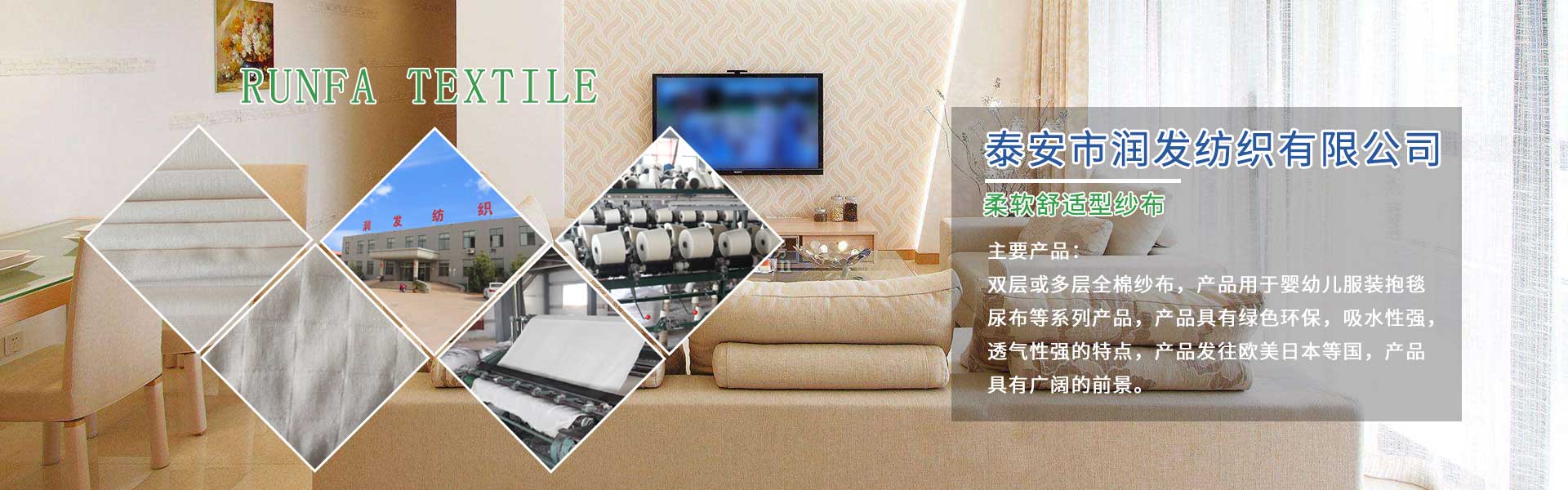 泰安市潤(rùn)發(fā)紡織有限公司是一家規(guī)上民營(yíng)紡織企業(yè),主要產(chǎn)品:雙層或多層全棉紗布,產(chǎn)品用于嬰幼兒服裝抱毯尿布等系列產(chǎn)品,產(chǎn)品具有吸水性強(qiáng),透氣性強(qiáng)的特點(diǎn),產(chǎn)品發(fā)往歐美日本等國(guó),產(chǎn)品具有廣闊的前景。
